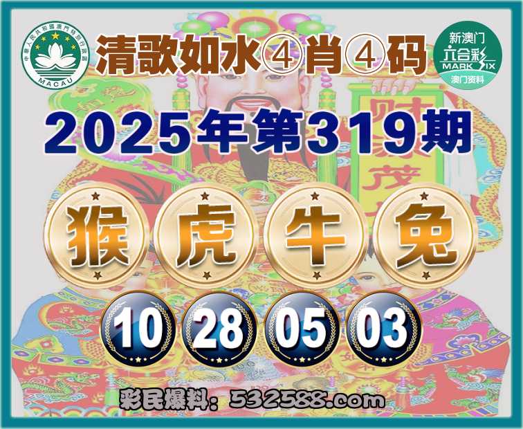 319期: 😜『清歌如水』 😜④肖④码😜【猴虎牛兔】【10.28.05.03】开:00准