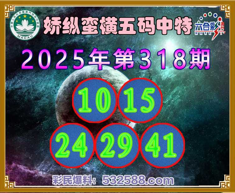 318期: 🧦『娇纵蛮横』 🧦五码中特🧦【10.15.24.29.41】开:06错