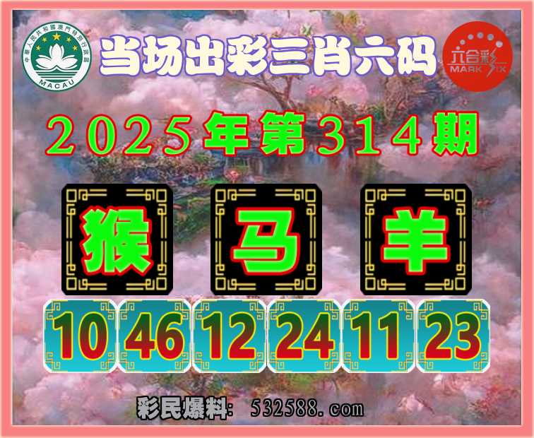 314期:【当场出彩】 ⛩️三肖六码⛩️【猴马】开:羊23
