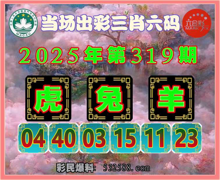 319期:【当场出彩】 ⛩️三肖六码⛩️【虎兔羊】开:00准