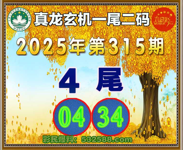 315期:【真龙玄机】 🤩一尾二码🤩【4尾主:04.34】开:04准