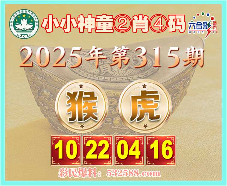 315期:《小小神童》 🎖️②肖④码🎖️【猴虎】【10.22.04.16】开:虎04准