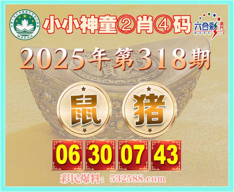 318期:《小小神童》 🎖️②肖④码🎖️【鼠猪】【06.30.07.43】开:鼠06准