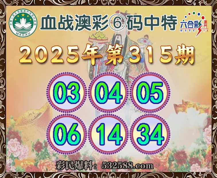 315期: 血战澳彩 💄⑥码中特💄【03.04.05.06.14.34】开:04准