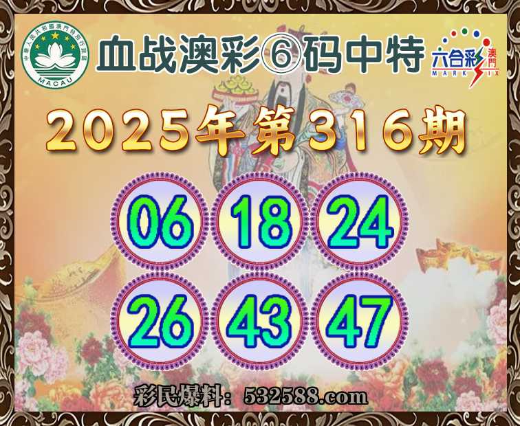 316期: 血战澳彩 💄⑥码中特💄【06.18.24.26.43.47】开:24准