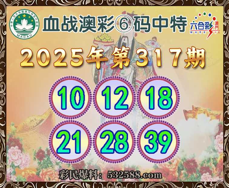 317期: 血战澳彩 💄⑥码中特💄【10.12.18.21.28.39】开:18准