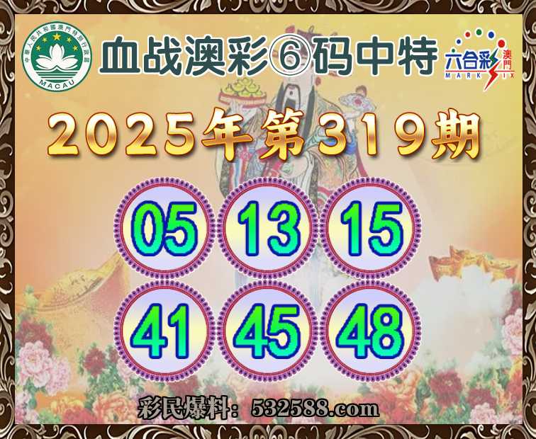 319期: 血战澳彩 💄⑥码中特💄【05.13.15.41.45.48】开:00准